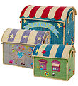 The storage baskets have handles on the sides so they are easy to move around, and they can be stored inside each other from largest to smallest. The storage baskets can be used both for storage but also as playhouses.