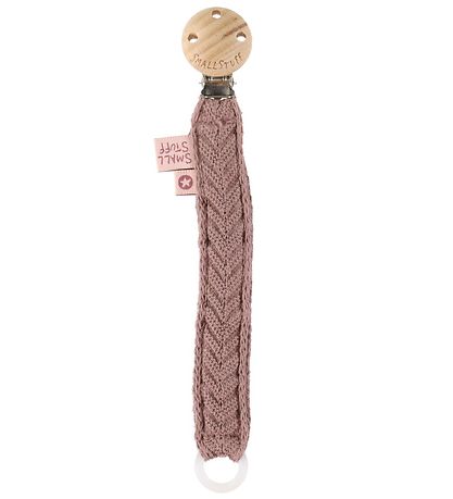 Fine Smallstuff pacifier clip in vintage pink and crochet in cotton with a nice herringbone pattern.