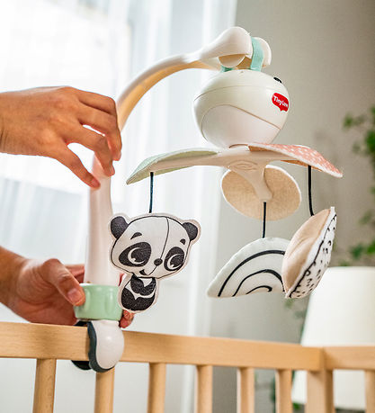 Cute Tiny Love baby mobile with several elements such as clouds with crackle paper, and a little panda teddy bear.