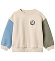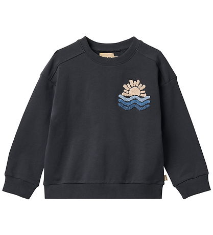 Stylish Wheat sweatshirt in navy with a beautiful motif of a sun and waves on the chest in soft terrycloth. The Wheat sweatshirt has long sleeves and a classic round throat, which gives a clean and timeless look.