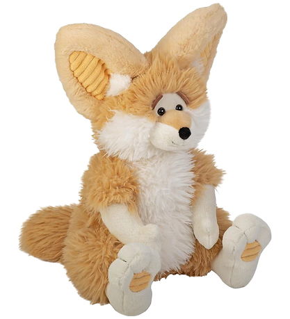 Cute Wild Republic soft toy shaped like a sitting desert fox in light brown and white. The Wild Republic soft toy has large, soft ears and a fluffy fur that makes it both cute and huggable.