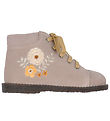 Stylish Angulus boots in vintage pink suede with a decorative bow and a toe with a glossy finish that gives an elegant look.