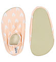 The Aqua Lung beach shoes have an outer surface of blue neoprene and light green mesh along the sides of the feet. Inside there is a sole that can be easily taken out of the shoes. The Aqua Lung beach shoes have an outer sole of white, flexible rubber with a pattern that goes up against the toe and heel and ensures a good foothold and protection.