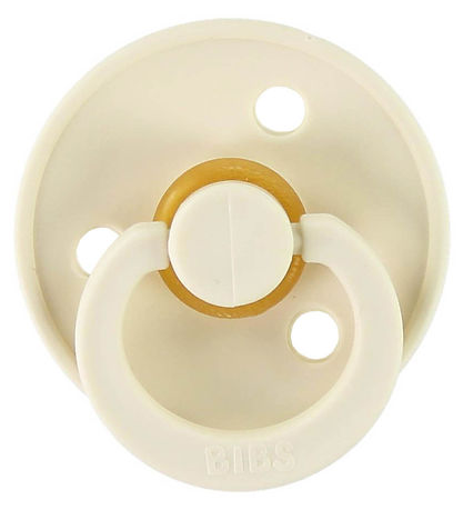 The BIBS pacifiers have a natural, round pacifier head made of natural rubber. The pacifier's shield is made of lightweight PP and has a circular and outward-facing design with practical air holes, so that nuisance from the moist environment and vacuum against the kid's skin is avoided.