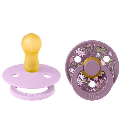 Smart BIBS x Liberty pacifiers, sold in a practical 2-Pack in two shades of purple with a fine print of flowers.
