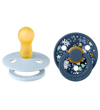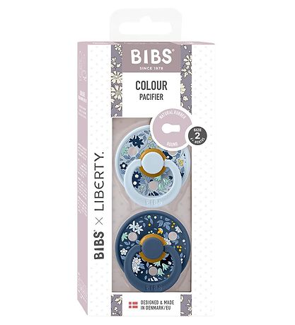 The BIBS x Liberty pacifiers have a round pacifier head made of natural rubber. The pacifier's shield is made of lightweight PP and has a circular and outward-facing design with practical air holes, so that nuisance from the moist environment and vacuum against the kid's skin is avoided.