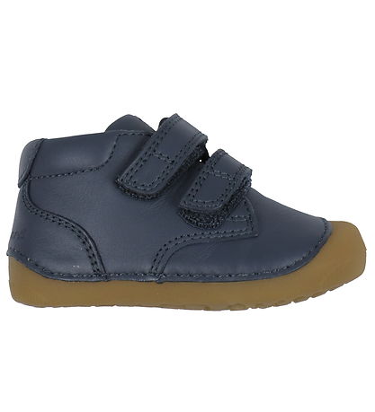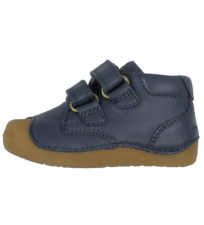 Smart Bundgaard prewalker in dark blue leather with a brown outsole.