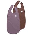 The CeLaVi bib is a long model and it is tied at the neck with a tie. The bib has a PU coating that makes it waterproof and easy to wipe off.
