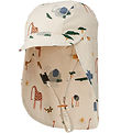 The Color Kids sun hat has a round head shape with a little brim at the front. An extra piece of wide fabric is sewn onto the neck so that the kid is also protected from the sun's rays here. At the neck, the sun hat also has a smart elastic edge sewn on the inside, which creates cute wrinkle effects on the outside.