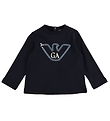 The Emporio Armani blouse has a cut like a sweatshirt with long sleeves and wide hems. The Blouse is made in a strong quality.