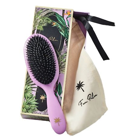 The Fan Palm brush has soft and gentle wild boar hair as well as longer nylon brushes, to stimulate the scalp and help detangle the hair. Many people can reduce their hair wash to every third or fourth day, as the wild boar hair helps to spread the natural oils throughout the hair.