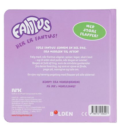 Forlaget Bolden the book is a sweet book about the little, purple elephant Fantus, which kids know from DR's Minisjang. It is an pegebog with flaps on all pages.