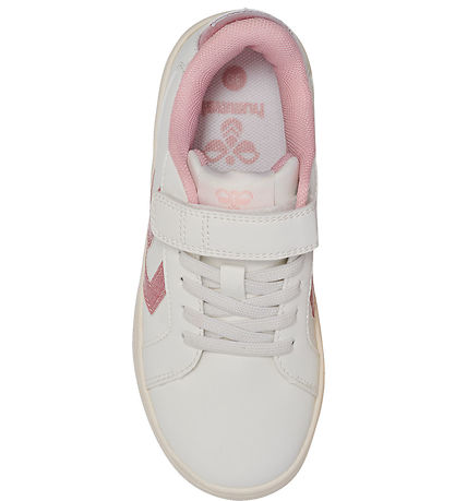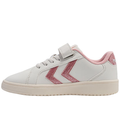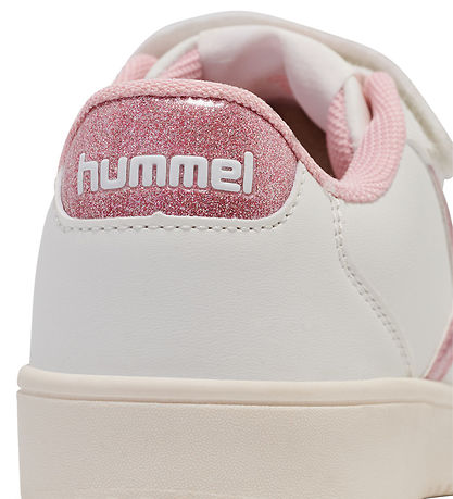 Beautiful Hummel shoes in white with Hummel- shevrons in pink glitter on the sides, as well as the same pink glitter on the heel.