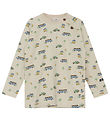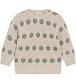 The Hust and Claire blouse has long sleeves and soft ribbed edges, and the blouse opens at the neck with small buttons.