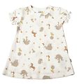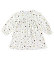 The Joha dress has a nice A-cut and has wide shoulder straps that close with wood buttons at the front. The practical pockets with distinctive, round openings on each side are ideal for storage small treasures.