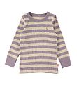 The blouse from Katvig is pink and light grey striped.