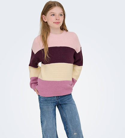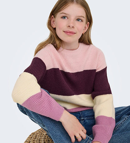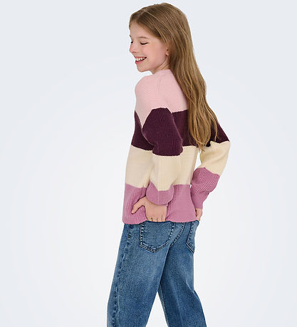 Modern blouse from Kids Only in a beautiful striped design in the colours pink, bordeaux, cream and deep pink.