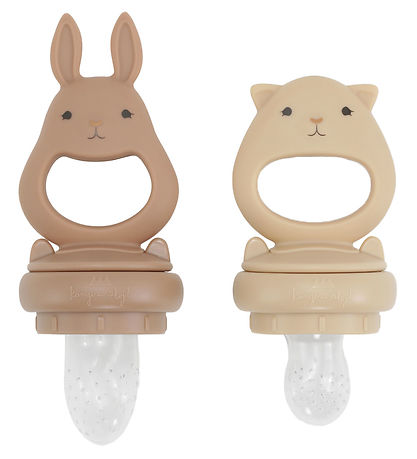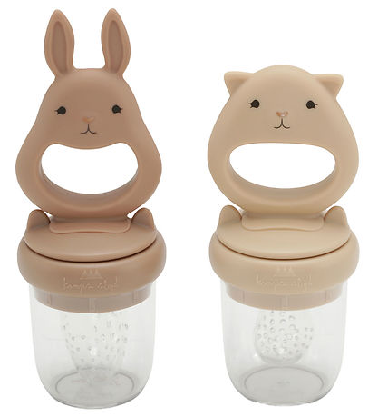 Each food feeder consists of a silicone teat with small holes in which you can put different food items. When the kid chews on the dummy, the food is pushed out through the holes. Try e.g. with melon, banana, boiled cauliflower and the like. Toppen's animal design is a large teether, which the baby can easily grasp and/or bite into.