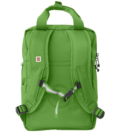 Smart LEGO® school backpack in a ready green colour shaped like a LEGO® block.