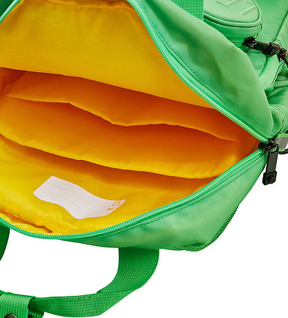 The LEGO® school backpack consists of a large Rum that opens with a zipper. Inside there is a large Rum and two padded pockets that can contain, for example, papers, notebooks and a computer. The inside is yellow lined, and in the back Rum there is a name tag at the top. On the front of the school backpack there is a smaller zipper pocket and four small, round Rum for various small items. On one side there is an open slip pocket for, for example, a water bottle. The School backpack has a quilted bottom.