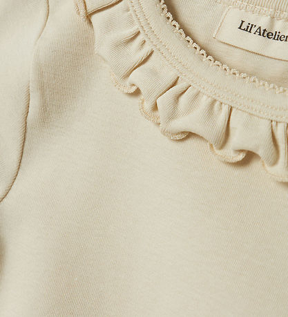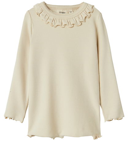 Elegant blouse from Lil' Atelier in a light, beige shade. The Blouse has long sleeves and a round neckline with fine ruffle details. The soft surface gives a discreet and stylish appearance. Lil' Atelier's characteristic design presents a simple style that is both timeless and modern.