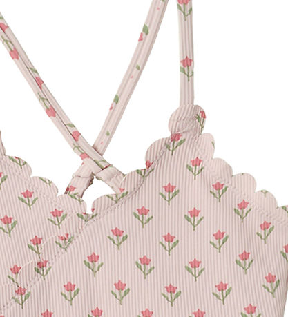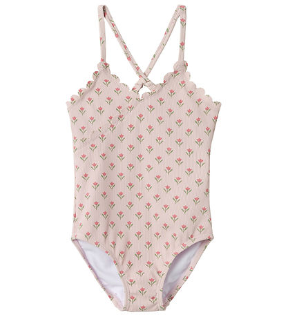 Beautiful Lil' Atelier swimsuit in lavender with an all-over-print of small flowers and a fine ribbed structure.