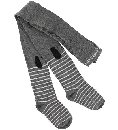 Beautiful Melton tights in gray with white stripes. Around the ankles, there is a print of cute dogs with ears.