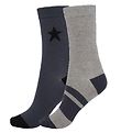 Fine Molo socks in a 2-Pack. One pair is plain pink with a simple smiley print on the top of the foot, while the other is offwhite with different colored smiley print. The Molo socks have a long shaft with a fold at the top.