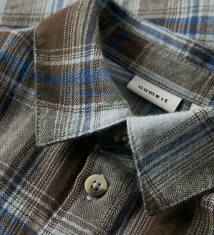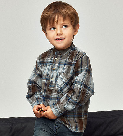 Beautiful shirt from Name It in a check pattern in brown and blue shades. The Shirt has a traditional collar and long sleeves. The Shirt has a continuous button closure at the front and a chest pocket on the left side.