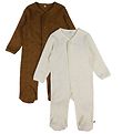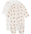 The Nightsuits have long sleeves and legs with w. footies. They open at the front using a continuous closure with push buttons from the neck opening to the left foot. The Nightsuits have rib at the neck opening and wrists, which ensures a good and comfortable fit.