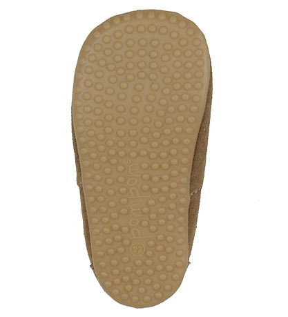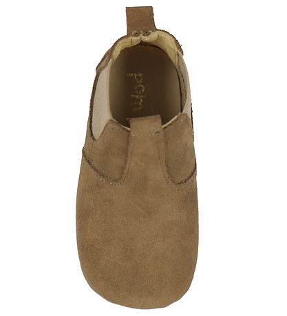 Beautiful Pom Pom soft sole leather shoes made of suede in a brown shade.