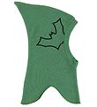 Beautiful Racing Kids balaclava in green with a bat in black on the left side.