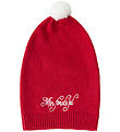Cute ThatThats Mine christmas hat in a red knit quality with a nice pointelle and a pom-pom in the tip.
