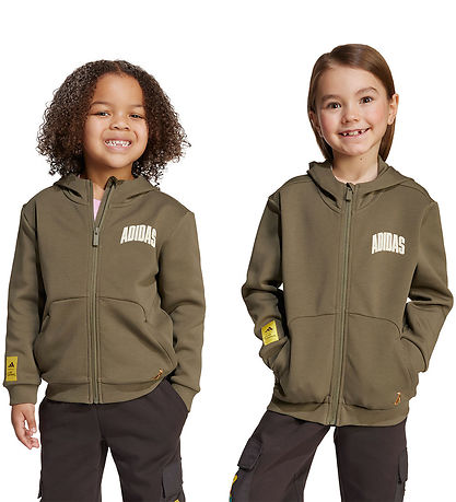 Beautiful adidas Performance cardigan in a stylish, olive green shade with adidas logo and The Simpsons print. The Cardigan has long sleeves and a full-length zipper, which gives a modern look. It has a practical hood and two spacious zipper pockets.