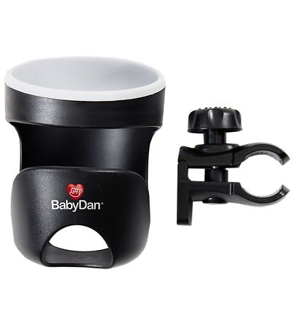 The BabyDan drink holder has an adjustable handle for putting around the handlebars of the pram or stroller. The holder has a practical rubber coating at the top, which ensures that the cup or feeding bottle does not slide around.