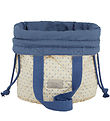 The Cam Cam Copenhagen project bag has a round shape and it consists of one large compartment. All around there are smaller pockets, two of which close with a flap with a push-botton. The Bag can be tightened at the top with a lace, and it can be carried in two long, wide shoulder straps.