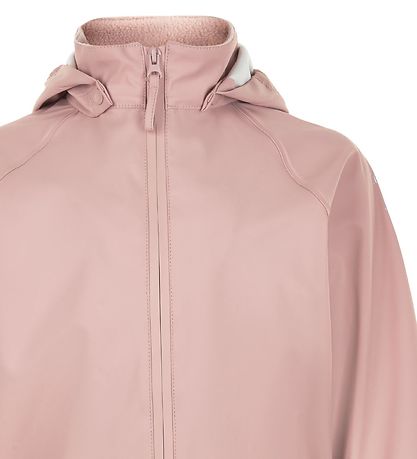 The CeLaVi rain jacket has a detachable hood, which is fastened with snaps, and it has an elastic edge, so the hood fits well. In the neck opening there is soft fleece. The sleeves have narrow elastic edges, and at the bottom of the jacket there is an elastic edge at the sides. The rain jacket is opened with a zipper with a rubber closure.