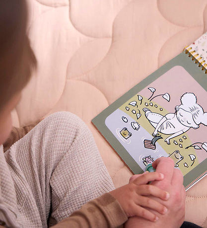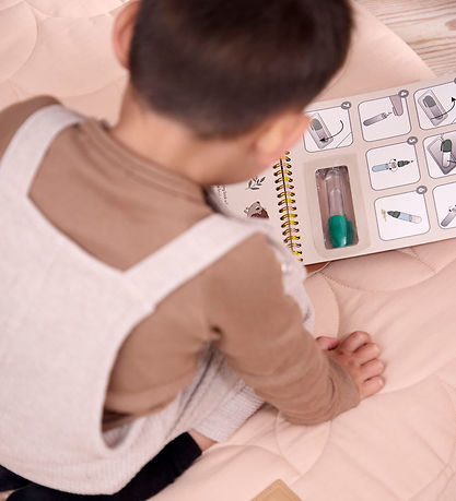 The Filibabba water coloring book has a spiral spine and thick pages with motifs that can be painted with the included, smart marker, which is filled with water. When the water from the pen frames the illustrations, the colours come out.