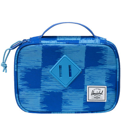 Lovely Herschel pencil case in shades of blue in a check pattern. The Pencil case has a large, blue rubber logo and a practical handle. It consists of one large Rum, which opens with a zipper. Inside there is striped textile in red and white. At the top there is a zippered net pocket. The Pencil case is spacious and has room for all the necessary writing utensils that you need to Have to school. Under the bottom there is a white name tag.