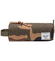 The Herschel pencil case has a square shape and consists of one large Rum that opens with a zipper. The compartment has a smart mesh zipper pocket at the top, and the pencil case has a practical handle at the end that makes it easier to carry.