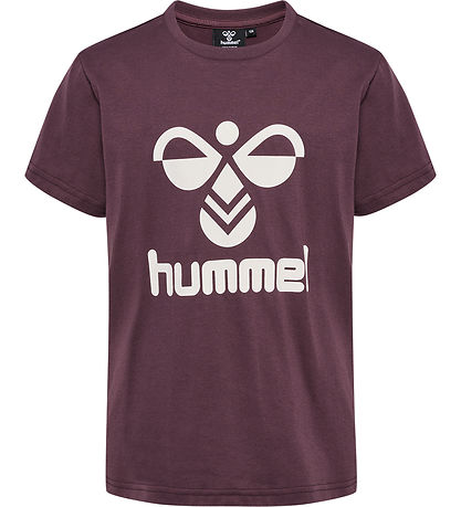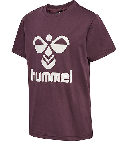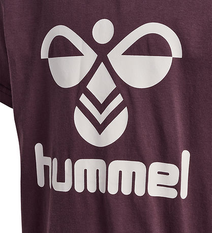 Beautiful Hummel t-shirt in dark purple with a large print of the brand's logo and name in white on the front.