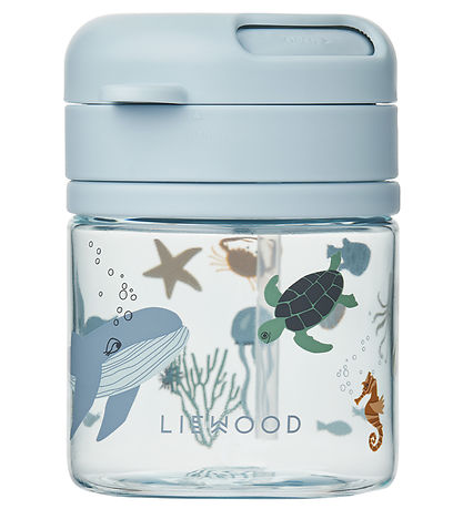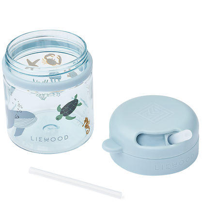 Smart Liewood cup in a bright, blue colour with cute sea creatures, including a whale, turtle and a seahorse, printed on the side.