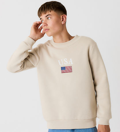 Beautiful LMTD sweatshirt in a light beige shade with a nice USA print and flag detail on the front. The Sweatshirt has long sleeves, which ensure comfort and warmth in cooler weather.