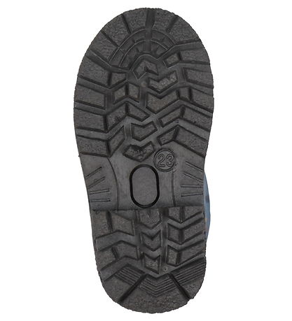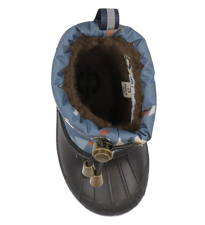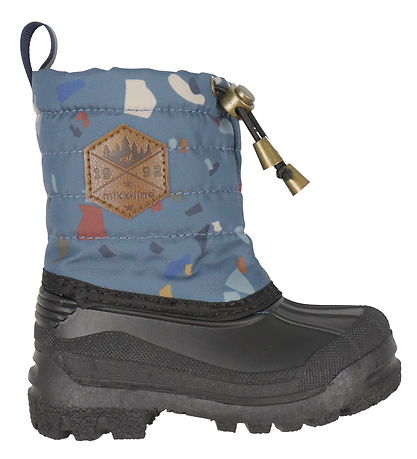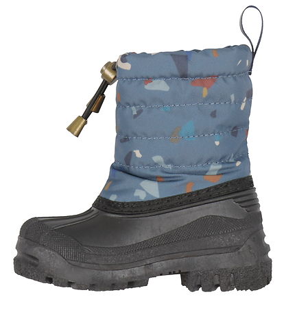 Smart Mikk-Line thermo boots in dusty blue with a colorful print with different toy figurine.
