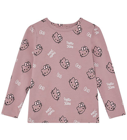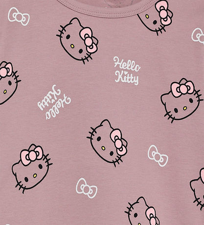 Charming Minymo blouse with long sleeves in a beautiful, dusty pink shade. The Blouse has an allover print with Hello Kitty. It has a practical round neckline and push buttons at one shoulder.