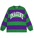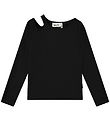 Charming Molo blouse in a light rose shade with a detailed print of two rabbits among dandelions and green leaves. The Blouse has long sleeves with narrow elastic edges with ruffle ends, and it closes at the left shoulder with push buttons.