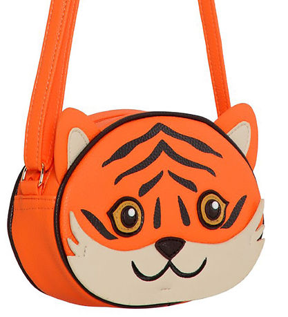 Beautiful Molo shoulder bag with the shape of a tiger cub in orange, black and beige made of imitation leather.