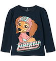 Charming Name It blouse with long sleeves in a beautiful dark blue colour and with a puff effect at the shoulders. The Blouse has a large and colorful print on the front of the dog Liberty from Paw Patrol with the text "Liberty" underneath, with glitter details.