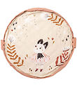 The Play&Go toy blanket is a large circular piece of fabric with a running course all the way around with a black string, so you can lace the blanket together into a bag. You can store your toys in the bag, and when the kids think the toys should be brought into the living room, the bag can be opens and the play mat unfolds. Afterwards, it is quick and easy to clean up and put in place.