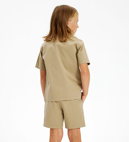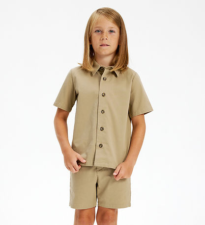 The New shorts have a wide elastic edge at the waist with adjustable buttons inside and practical belt loops at the waist. The Shorts opens at the front with a button and zip and in the sides there are two open pockets and two cheat pockets at the back. The Shorts are made of a soft and stretchy cotton quality.